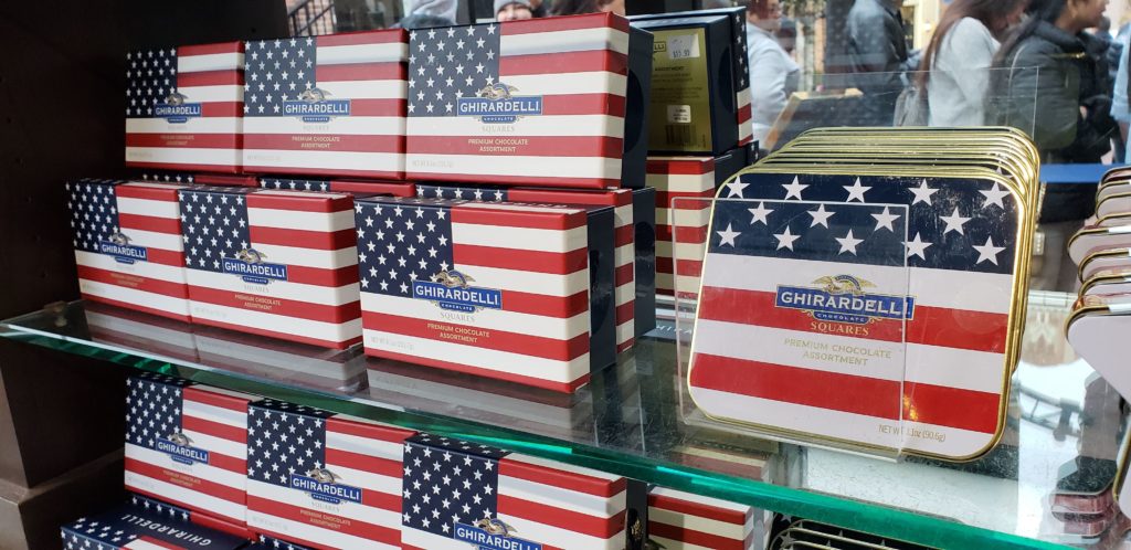 もちろんギラデリのチョコレートショップもあります。ちょっと見切れてしまっていますが、左の方に人が並んでいるのもギラデリショップのためで、お土産ではなくパフェなどを食べるために並んでいます。こちらもすごく人気です。